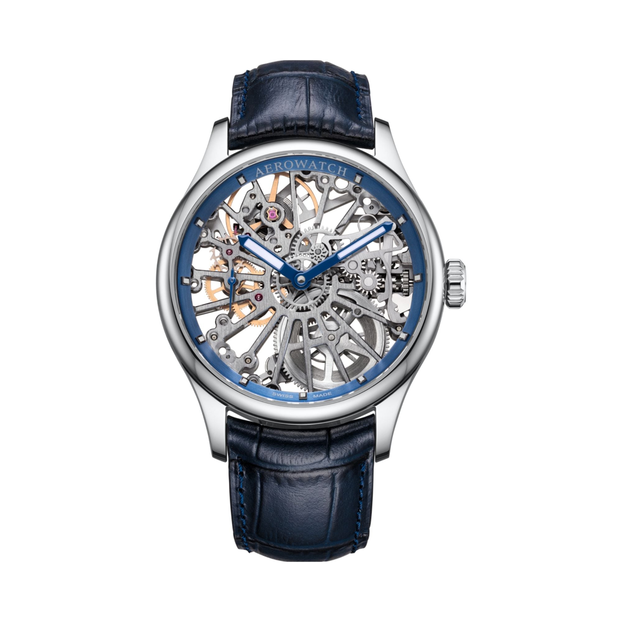 La A 50981 AA25 allie savoir-faire traditionnel et design moderne. Animée par le mouvement précis à remontage manuel ETA 6497, doté d'une mécanique squelettée et de 17 rubis, elle offre un aperçu fascinant de son fonctionnement interne. Son boîtier en acier inoxydable de 43 mm, avec verre saphir antireflet et fond transparent, protège l'élégant cadran aux index luminescents. Accompagnée d'un bracelet en cuir bleu foncé à boucle déployante, cette montre est un chef-d'œuvre d'élégance pour les amateurs exigeants.