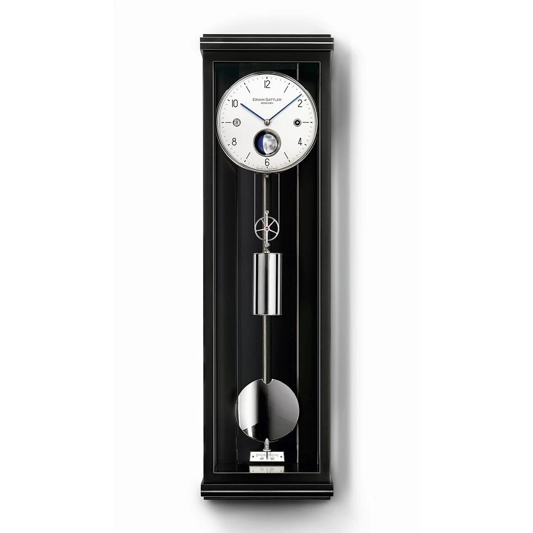 Une composition Classica particulièrement raffinée : cette délicate horloge à pendule associe un globe lunaire sculptural peint à la main à un affichage de la date parfaitement lisible. Son boîtier moderne, avec sa façade en verre antireflet et ses délicates incrustations métalliques, encadre la technologie avec raffinement et sobriété – une horloge qui sublime les espaces de vie sans les dominer.