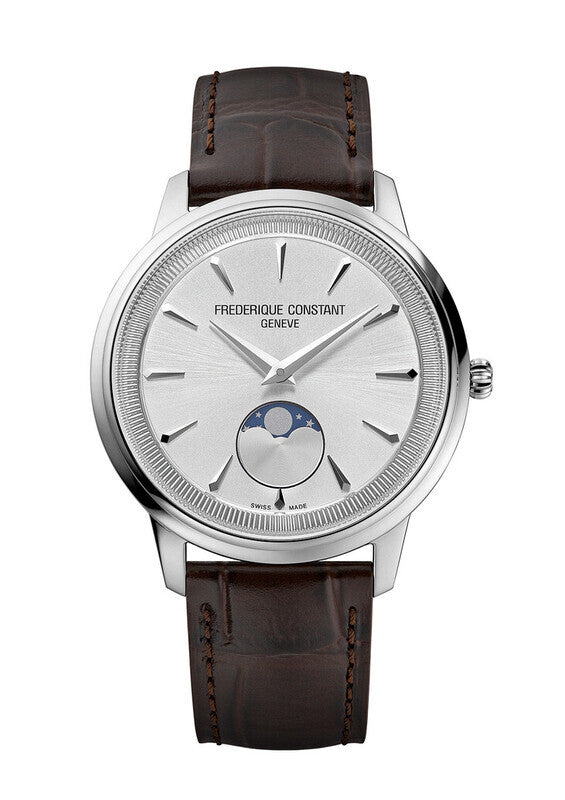 Découvrez la Frédérique Constant Classics Moneta Moonphase, dotée d'un mouvement à quartz sophistiqué et d'un élégant boîtier de 37 mm. La délicate phase de lune à 6 heures confère à cette montre une touche d'originalité. Inspirée par la tranche d'une pièce de monnaie, elle est subtilement reflétée sur la lunette intérieure. Parfaite pour une allure élégante !