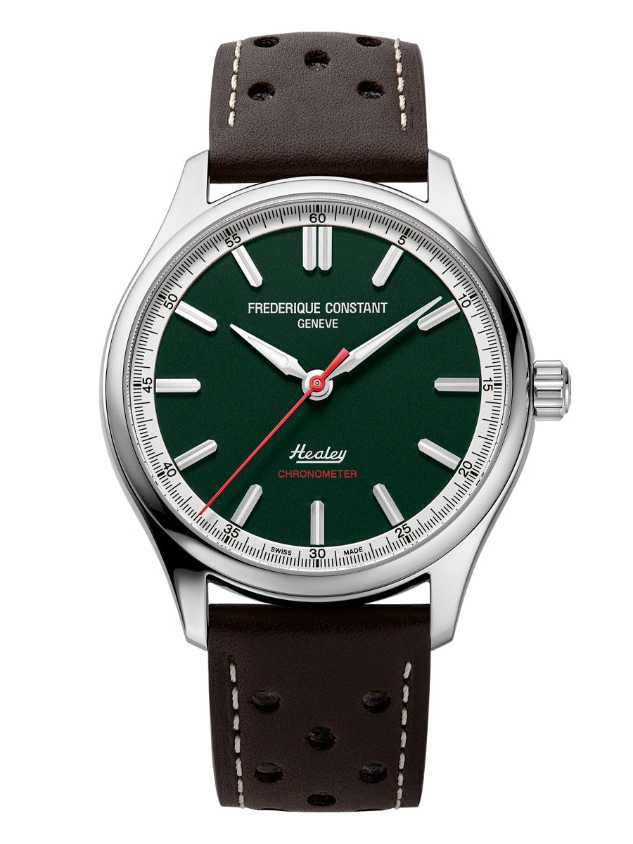 Plongez dans l'univers de l'automobile avec la montre homme Frédérique Constant Vintage Rally Healey Automatic Limited ! Fier partenaire de la légendaire marque automobile Austin Healey depuis 2004, elle est équipée d'un mouvement certifié COSC. Son élégant cadran vert, son boîtier de 40 mm et son édition limitée à 1 888 exemplaires en font un modèle exceptionnel. La montre est livrée dans un coffret cadeau avec une miniature d'Austin Healey.