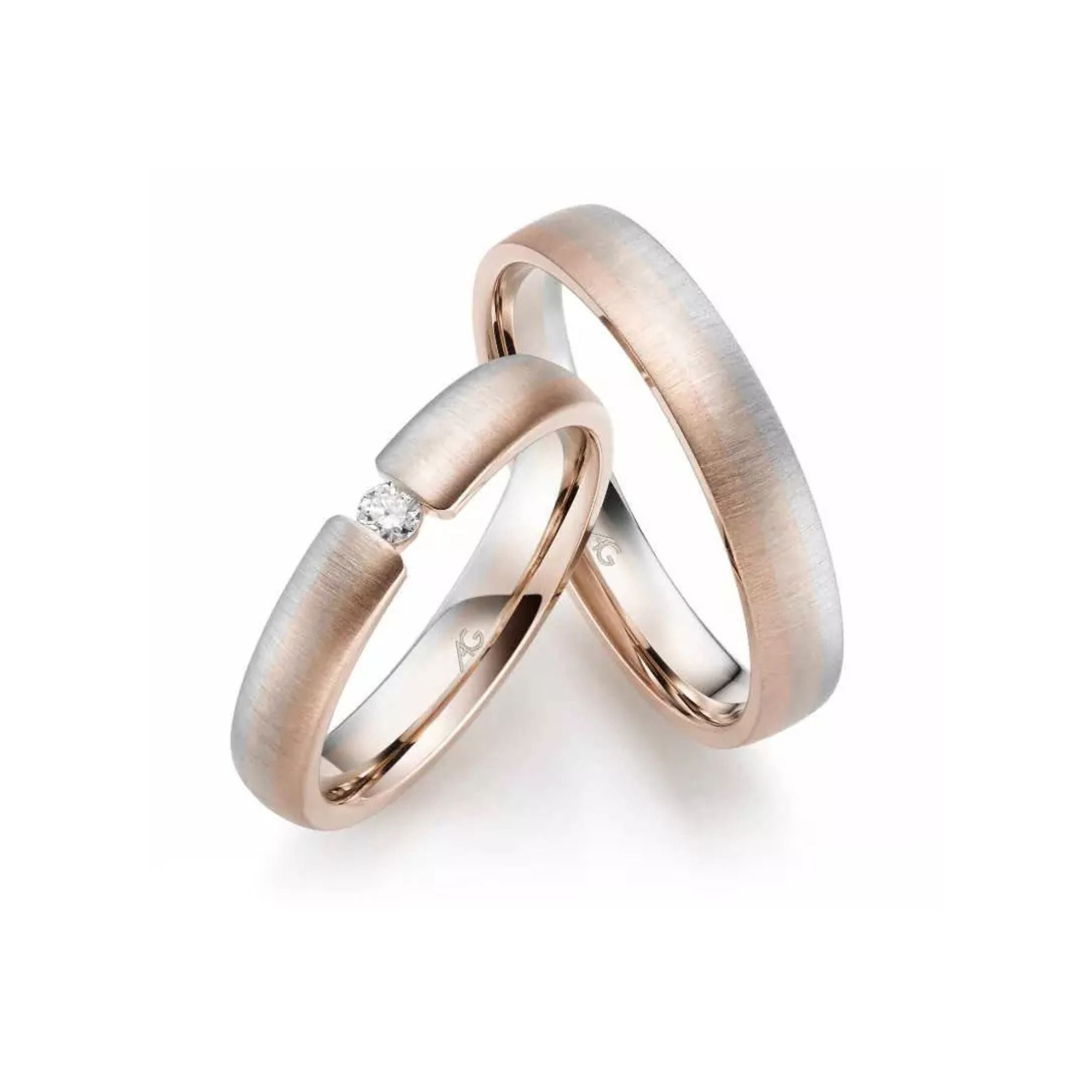 Offrez à votre amour un éclat étincelant avec les alliances Gerstner Moonlight Multicolor 31150/4.5 | 4/31150/4. Ces élégantes bagues en or blanc, or noisette et or rose, mesurant respectivement 4,5 mm et 4,0 mm, sont ornées d'un diamant étincelant de 0,06 ct. Un véritable chef-d'œuvre d'artisanat.