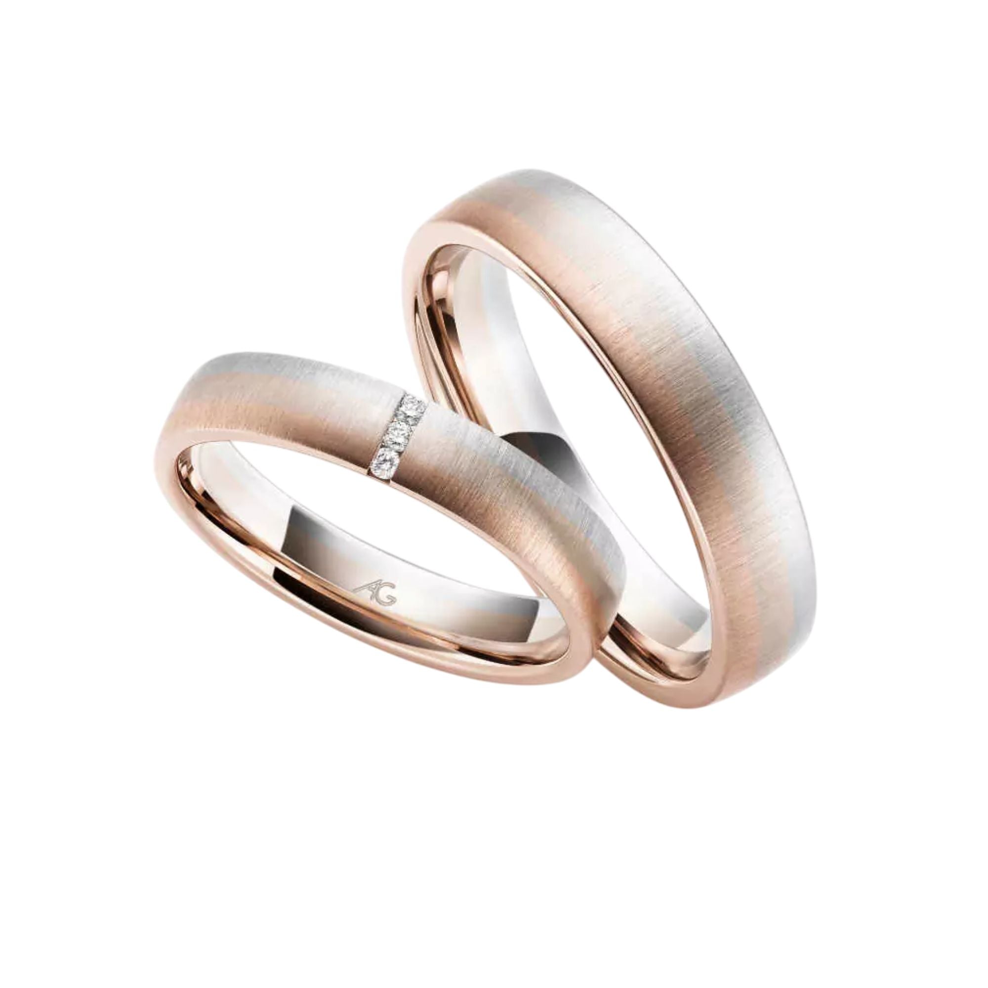 Les alliances multicolores Gerstner Moonlight 31153/4 sont fabriquées à la main en or blanc, or noisette et or rose de haute qualité. Les modèles pour homme et femme mesurent chacun 4,0 mm de large. Avec trois diamants étincelants et un poids total de 0,024 carat, ces alliances sont non seulement élégantes, mais aussi de la plus haute qualité. Parfaites pour une union éternelle au clair de lune.