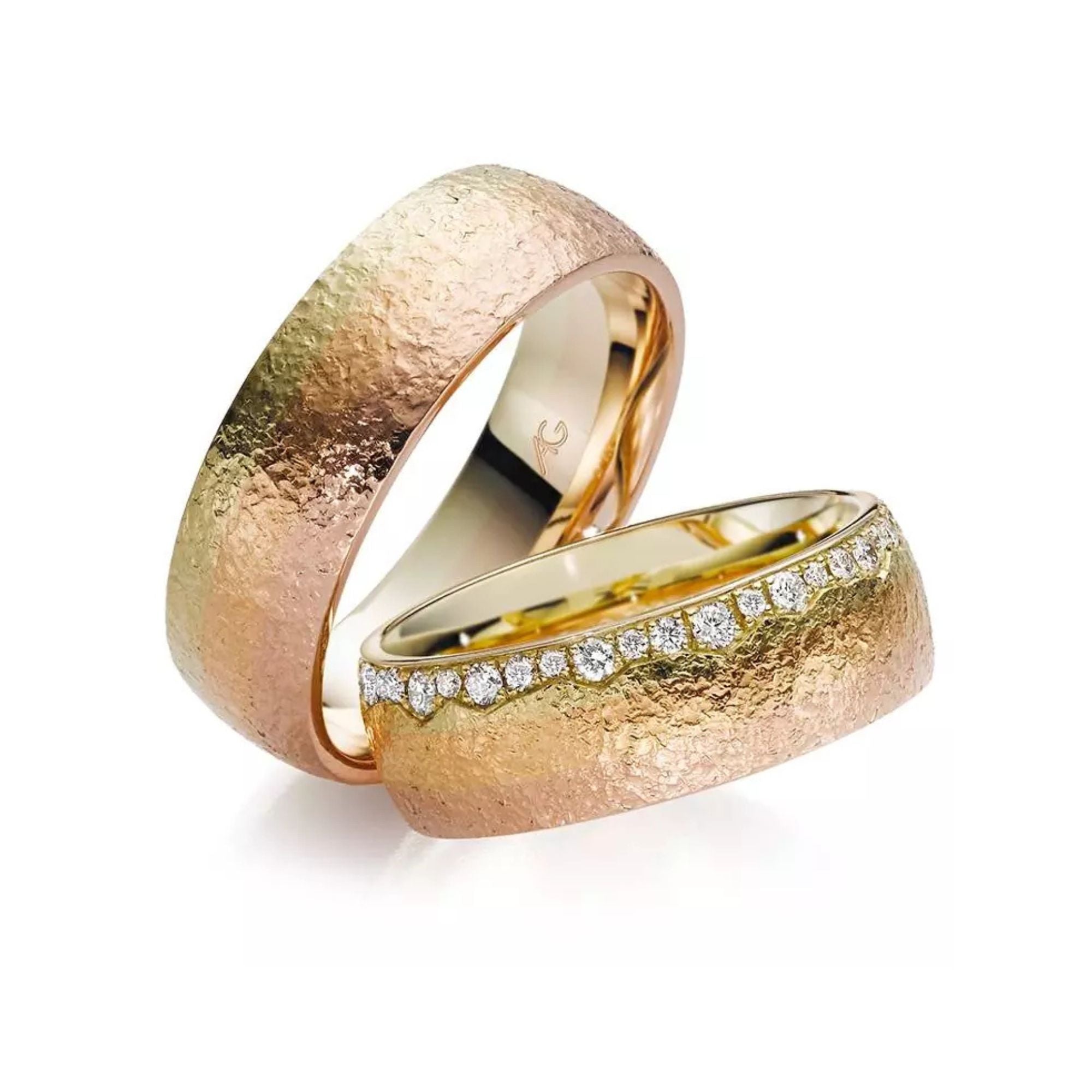 Célébrez votre amour avec les alliances multicolores Gerstner Morgenröte ! L'association de l'or rose, de l'or moyen et de l'or jaune confère à ces bagues une palette de couleurs unique. 22 diamants étincelants, totalisant chacun 0,215 ct, apportent une touche de luxe. Les bagues pour femme et homme ont chacune une largeur de 7,00 mm.