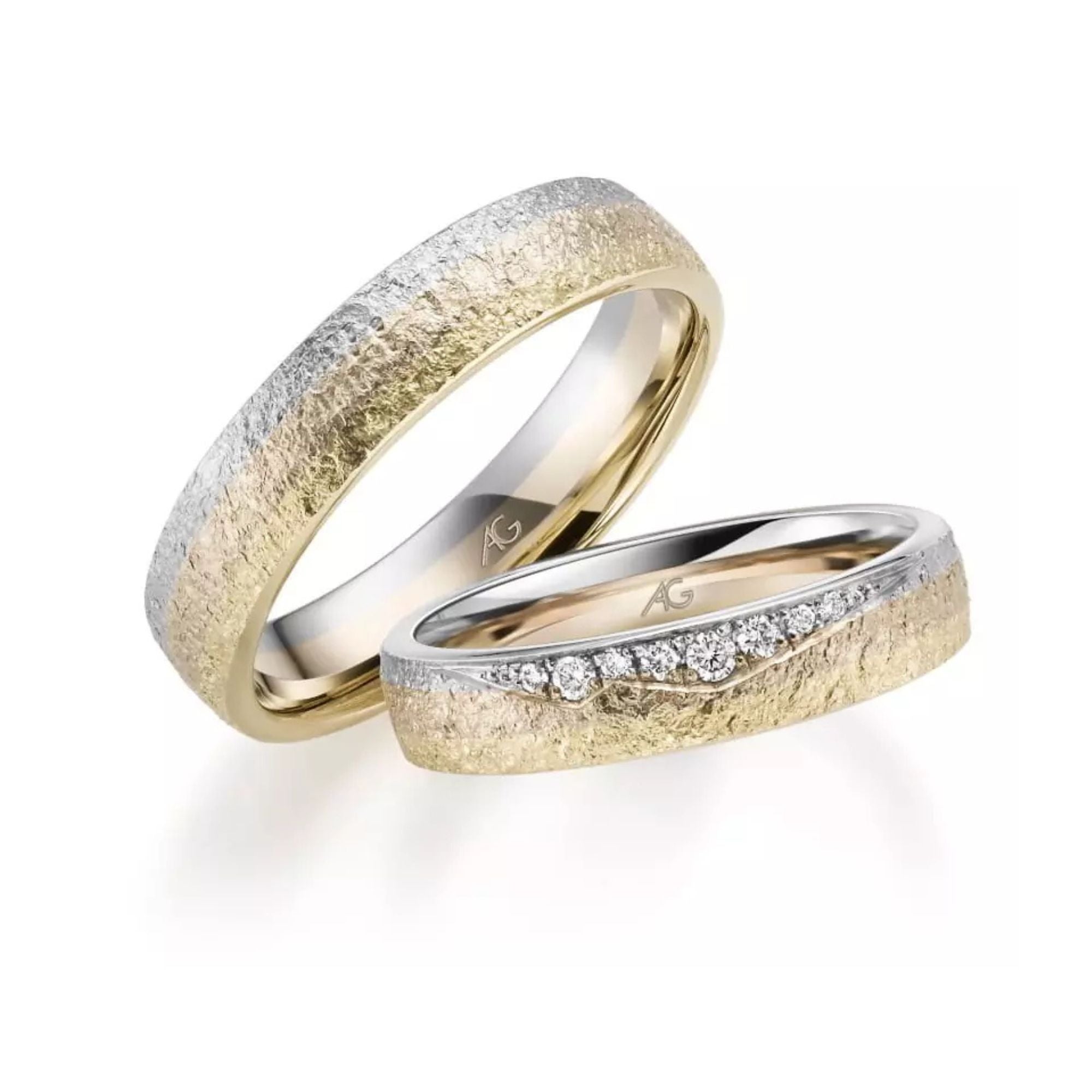 Découvrez la beauté des alliances multicolores Sunlight de Gerstner. L'alliance de l'or jaune 585/14 carats, de l'or blanc et de l'ivoire rend ce modèle unique. Avec huit diamants étincelants, mesurant chacun 5,00 mm et 4,00 mm de large, cette paire d'alliances rayonne d'amour et d'éclat. Poids total : 0,08 carat.