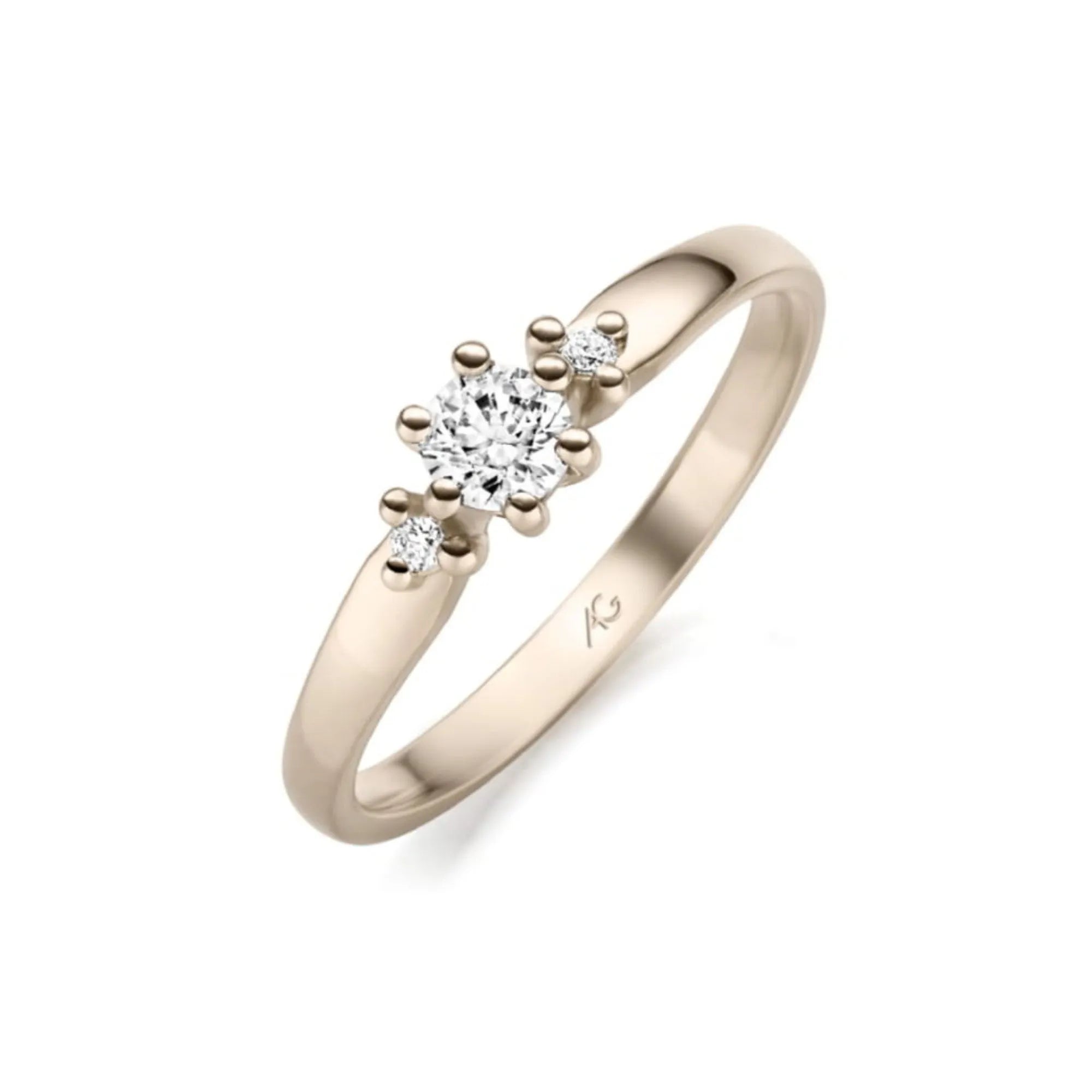 Les bagues de fiançailles Gerstner sont réalisées en or noisette 14 carats, d'une largeur de 2,1 mm et d'une hauteur de 1,3 mm. Un diamant VSI-TW de 0,28 carat apporte un éclat particulier. Des versions sont également disponibles en or jaune, rose et blanc.