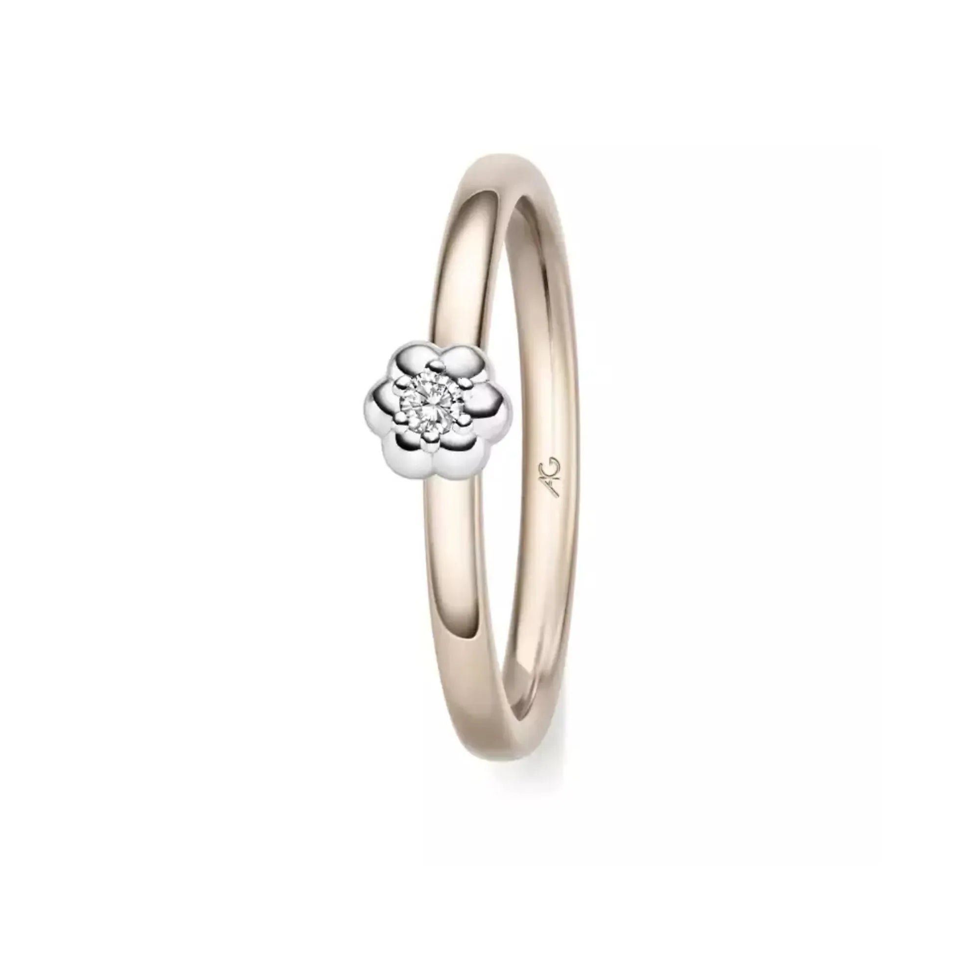 Le modèle Gerstner présenté ici est en or noisette 585 et impressionne par ses 2,00 mm de largeur et 1,4 mm de hauteur. Un diamant taille brillant de 0,04 carat, de qualité SI-TW, lui confère une élégance particulière. Cette bague de fiançailles exclusive est également disponible en or jaune, rose et blanc.