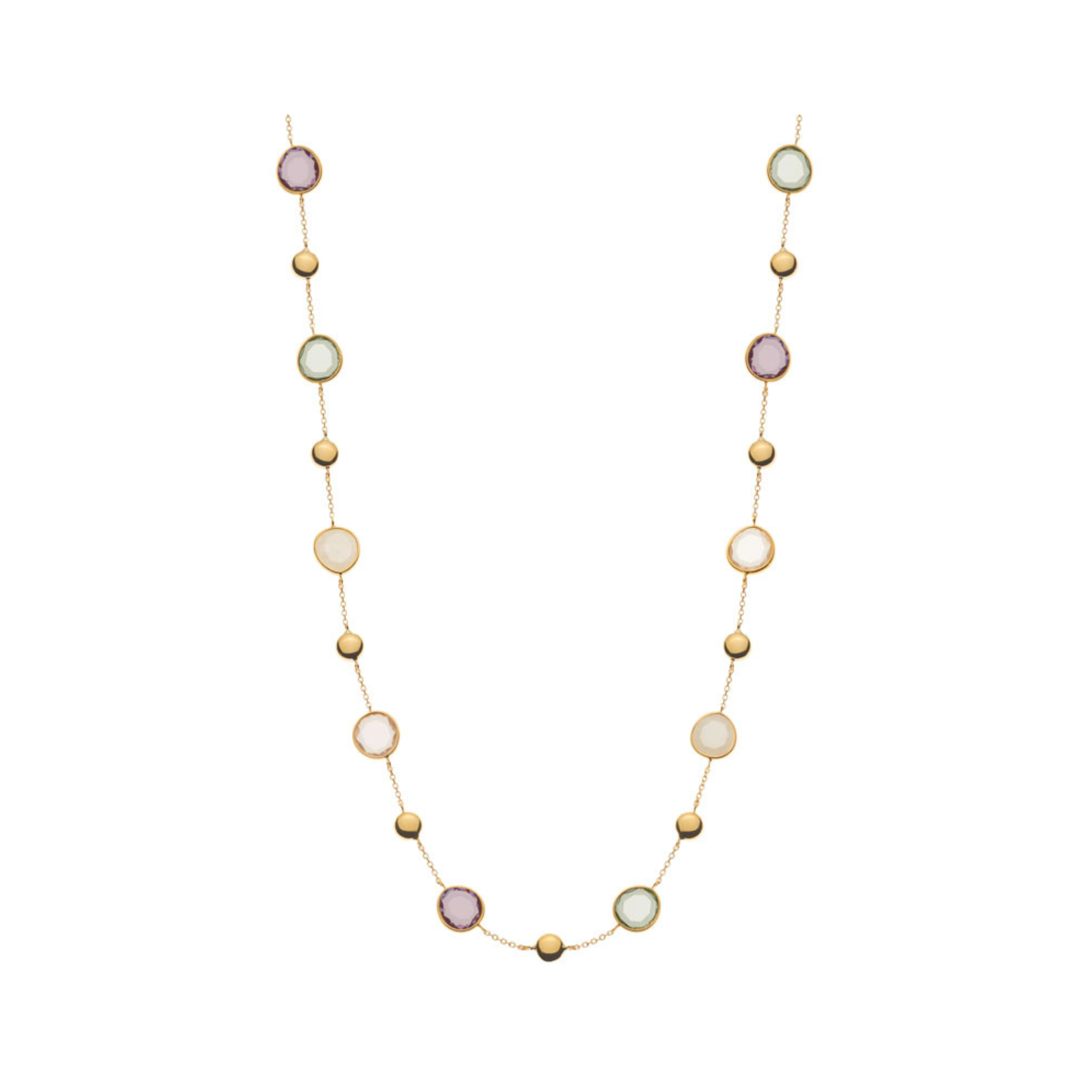 Le collier « Harmonie de Couleurs », réalisé en or jaune 18 carats de haute qualité, allie élégance intemporelle et palette de couleurs vibrantes. Sa chaîne de 45 cm est ornée d'un mélange enchanteur d' améthyste verte et violette , de quartz rose et de pierres blanches . Ces pierres précieuses confèrent au collier un charme à la fois luxueux et naturel, tandis que la chaleur de l'or jaune sublime parfaitement leur éclat.