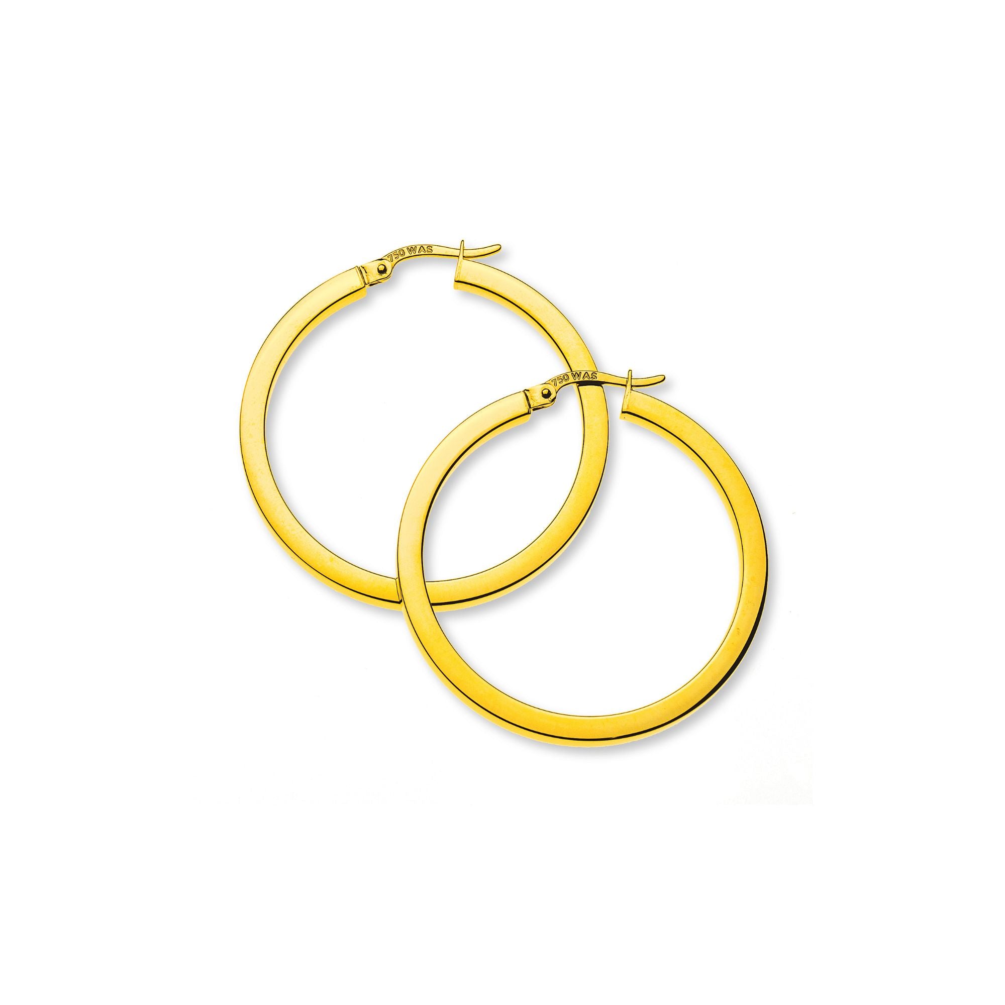 Ces élégantes créoles en or jaune 18 carats se distinguent par leur forme moderne et leur savoir-faire de haute qualité. Confectionnées en fil carré , elles mesurent 35 mm de diamètre et 3 mm de largeur. Leur design minimaliste, allié à la brillance luxueuse de l'or jaune, en font un bijou élégant en toute occasion.