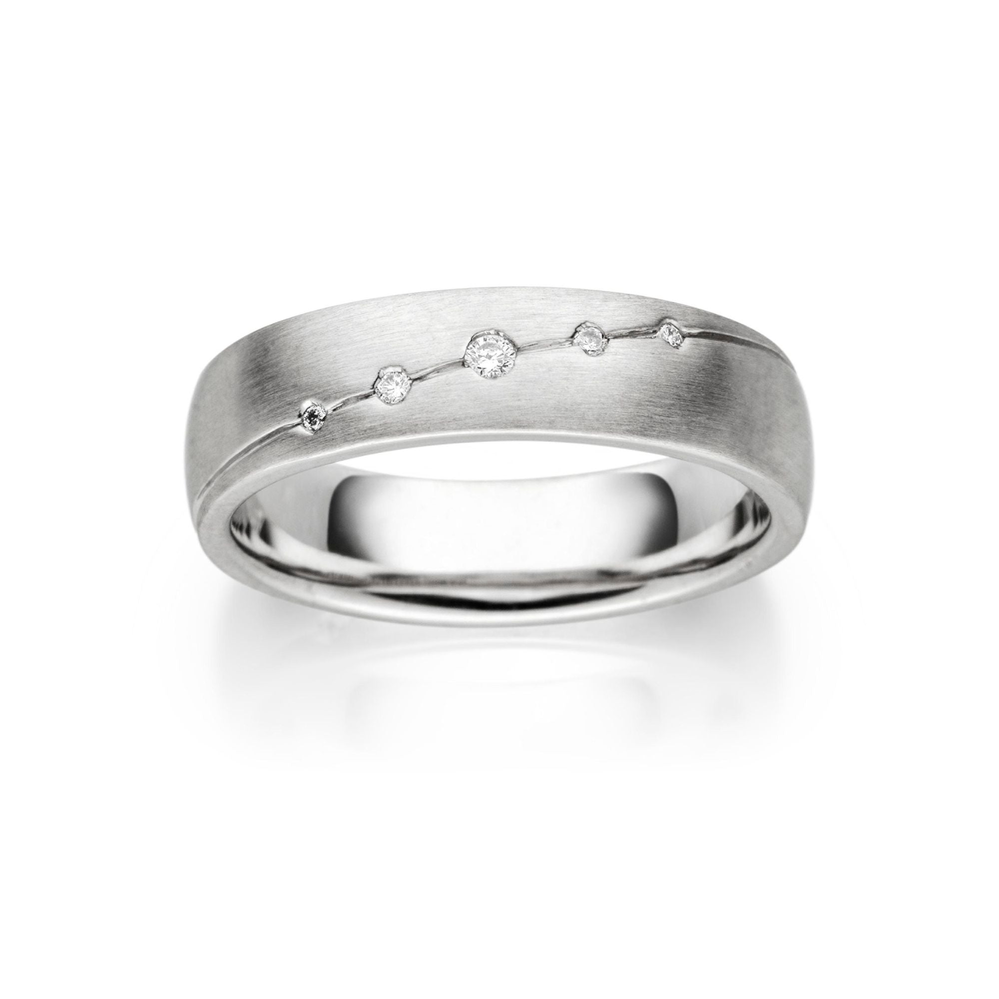Bague pour femme de haute qualité, alliances Viventy 698112, en argent sterling 925 avec un anneau d'environ 5 mm de large. Finition partiellement mate, ornée de cinq diamants taille brillant totalisant 0,0500 ct. Un choix élégant et intemporel pour une occasion spéciale.