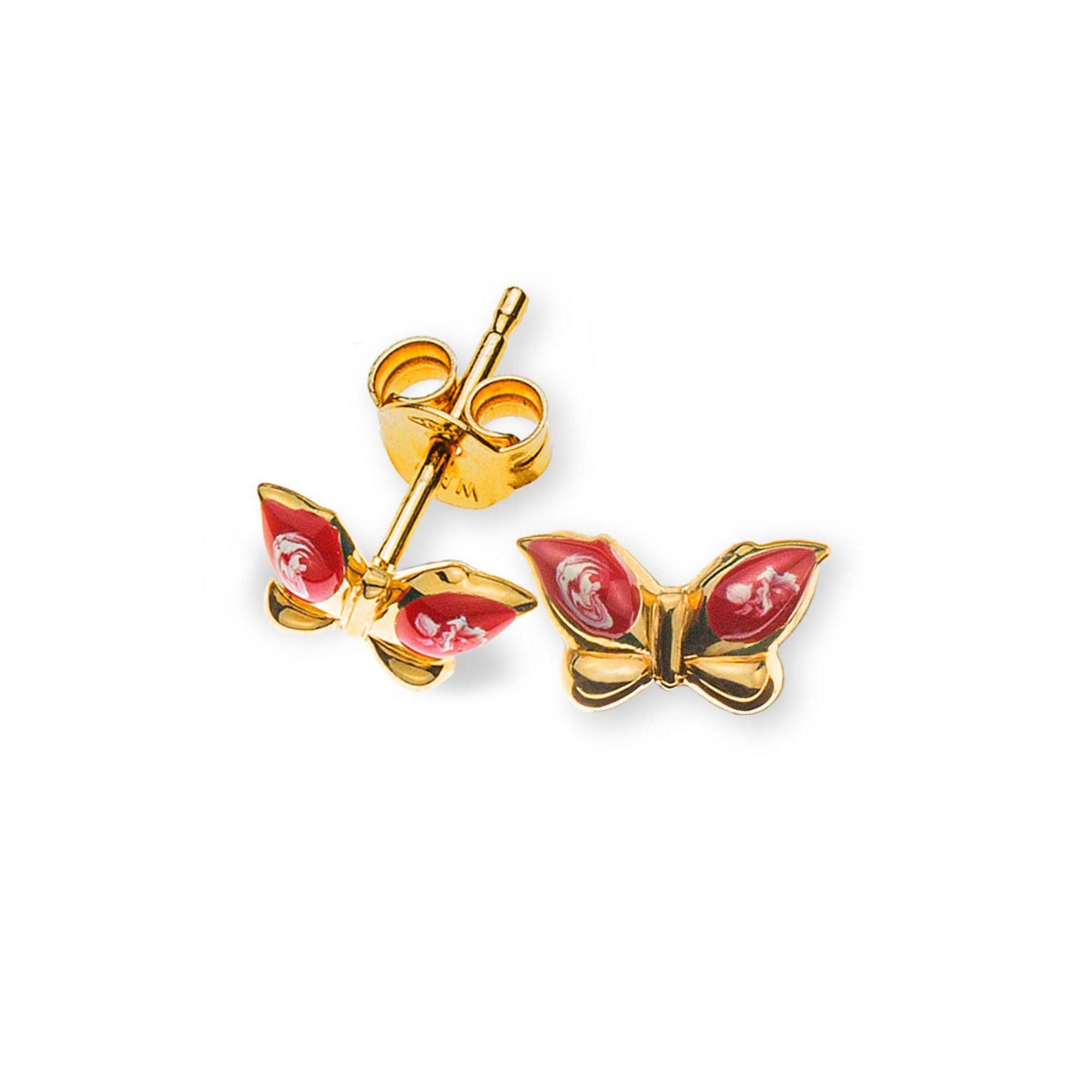 Diese Ohrstecker Schmetterling aus Gelbgold stammen aus der exklusiven „Green Gold by Wassner“-Kollektion und überzeugen durch ihr charmantes, verspieltes Design. Der Schmetterling ist mit feiner roter und weisser Emaille verziert, was den Ohrringen eine lebendige, aber elegante Ausstrahlung verleiht. Das hochwertige 750 Gelbgold ergänzt das Design mit einem edlen Glanz und macht diese Ohrstecker zu einem wahren Hingucker.
