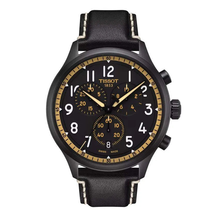 Die Tissot Chrono XL Vintage Limited Herrenuhr vereint sportliches Design mit hochwertiger Verarbeitung. Ausgestattet mit einem präzisen Quarzwerk und einem robusten 45 mm Edelstahlgehäuse, bietet sie Wasserdichtigkeit bis 100 Meter. Das kratzfeste Saphirglas schützt das schwarze Zifferblatt mit Chronograph, Datumsanzeige und Leuchtzeigern. Das schwarze Lederarmband sorgt für komfortablen Sitz, während die Dornschliesse sicheren Halt garantiert. Swiss Made und mit 24 Monaten Garantie ist diese Uhr ein zuverlässiger Begleiter für jeden Tag.