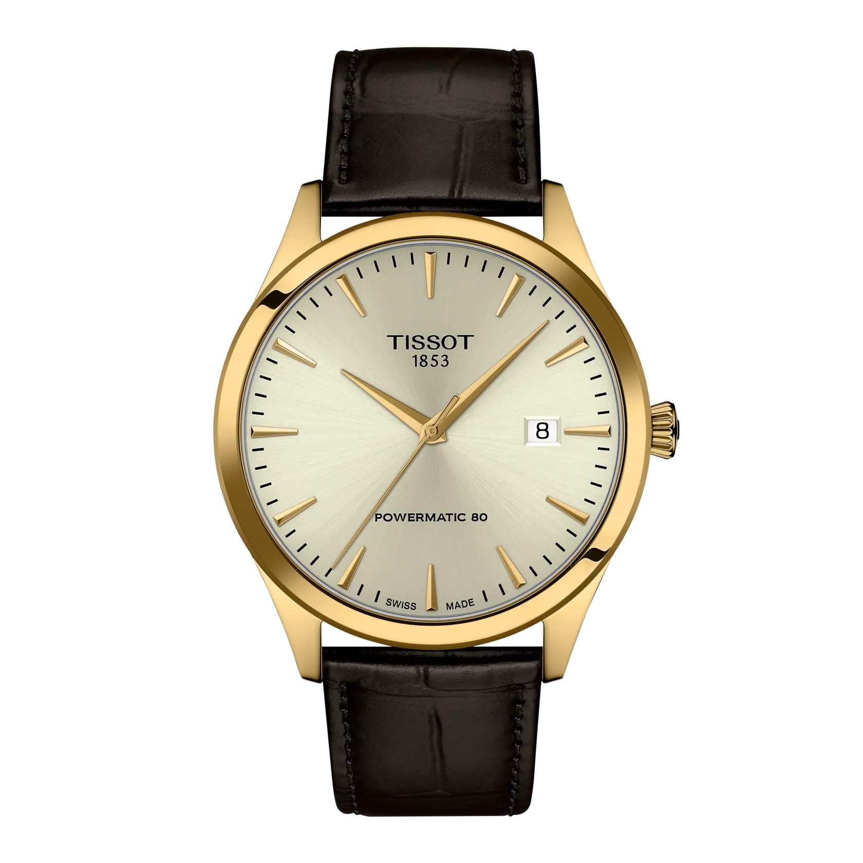 Entdecken Sie die Tissot Gentleman Powermatic 80 T158.407.36.261.00 – eine raffinierte Kombination aus klassischem Design und moderner Schweizer Uhrmacherkunst. Das goldfarbene Edelstahlgehäuse mit edlem Sonnenschliff-Zifferblatt verleiht dieser Uhr einen zeitlosen, eleganten Ausdruck, der besonders zu formellen Anlässen überzeugt. Angetrieben vom zuverlässigen Powermatic-80-Automatikwerk mit bis zu 80 Stunden Gangreserve begleitet Sie dieses Modell souverän durch Ihre Woche. Das fein gearbeitete Lederarmband unterstreicht den hochwertigen Charakter, während Datumsanzeige und kratzfestes Saphirglas praktische Funktionalität garantieren. Ein stilvoller Begleiter – jetzt exklusiv erhältlich bei Oberturm Uhren Schmuck Tissot Uhren.