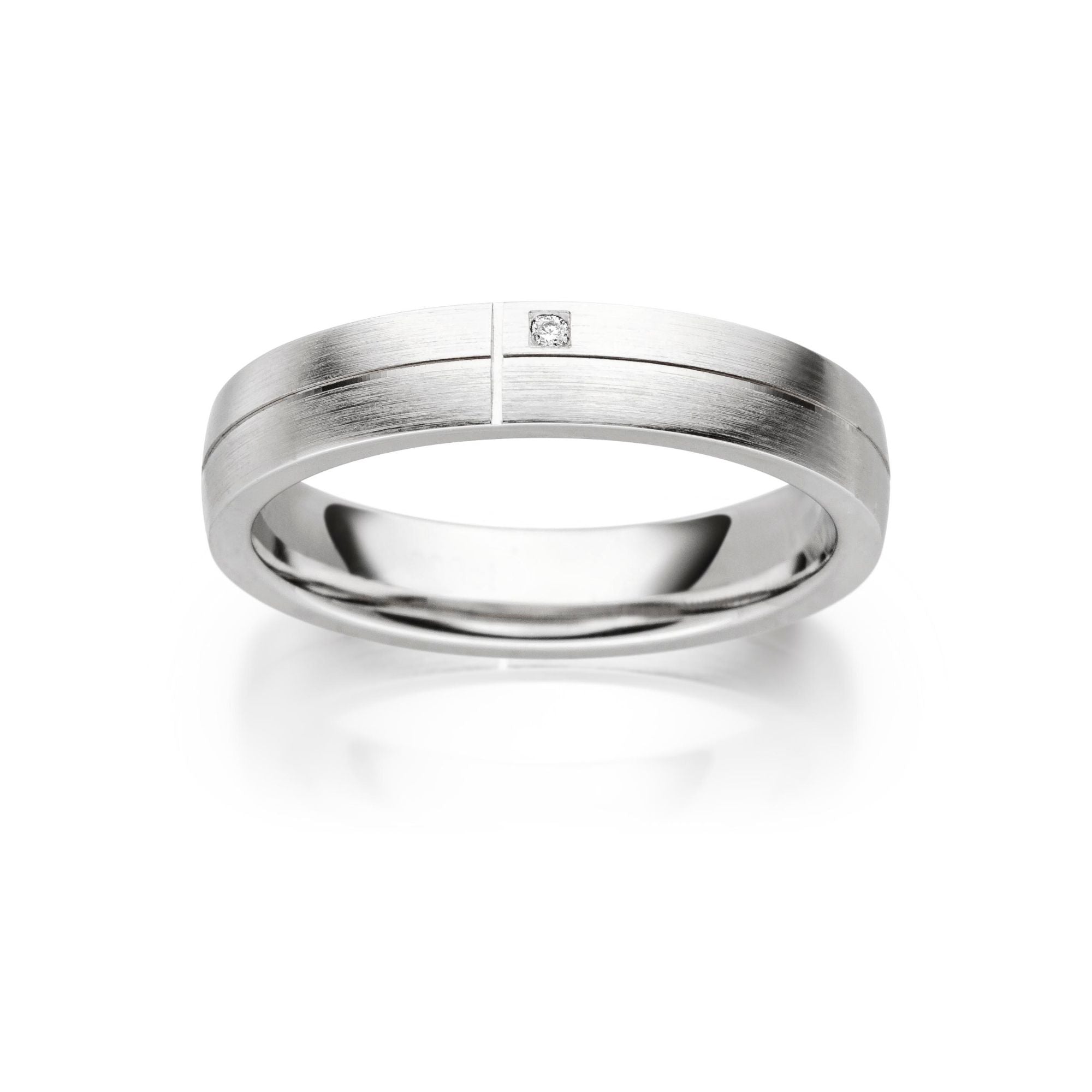 Hochwertige Viventy Trauringe 698122 mit Damenring aus 925/- Sterling Silber und dezent mattierter Oberfläche. Das Highlight ist der 1 Brillant mit insgesamt 0,0150ct, der dem Ring einen eleganten Glanz verleiht. Die Ringschiene mit einer Breite von 4mm eignet sich perfekt für eine angenehme Tragekomfort.